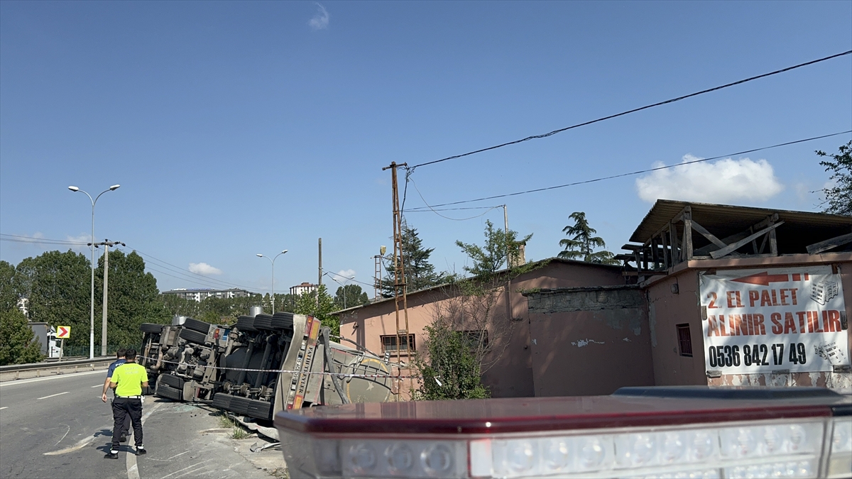 İSTANBUL (AA) - Pendik'te seyir halindeki beton mikseri kavşaktan geçtiği sırada devrildi.