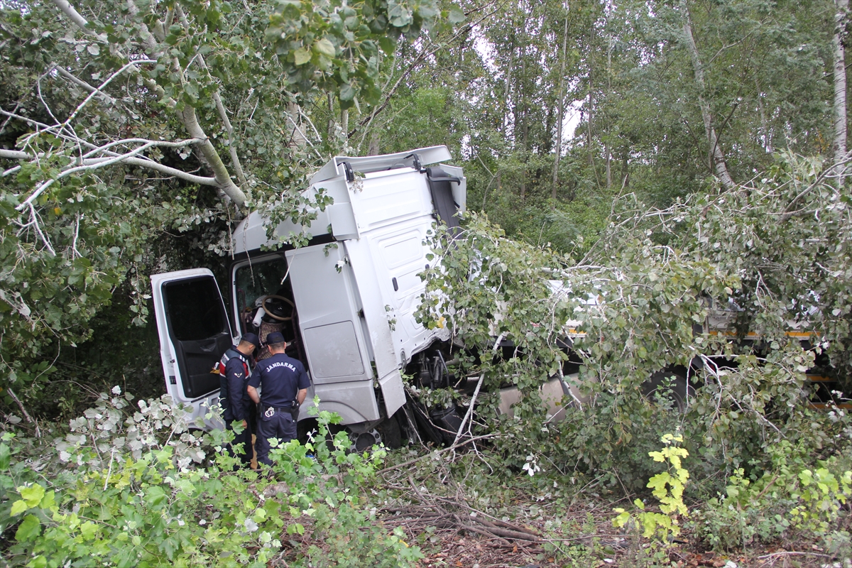 Anadolu Otoyolu'nda şarampole devrilen tırın sürücüsü yaralandı