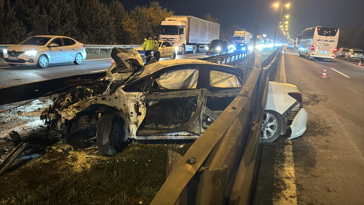 Kocaeli’de Anadolu Otoyolu’nda Bariyere Çarpan Otomobilde 4 Kişi Yaralandı