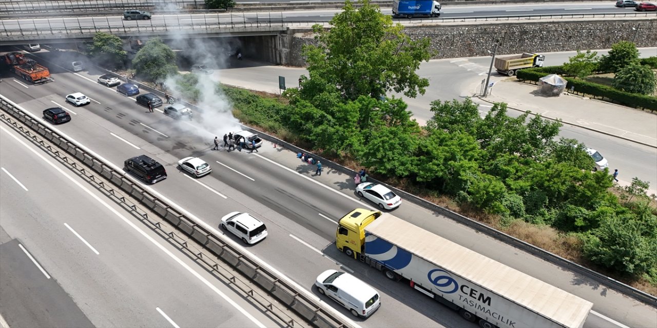 Anadolu Otoyolu'nda Seyir Halindeki Otomobil Alev Aldı