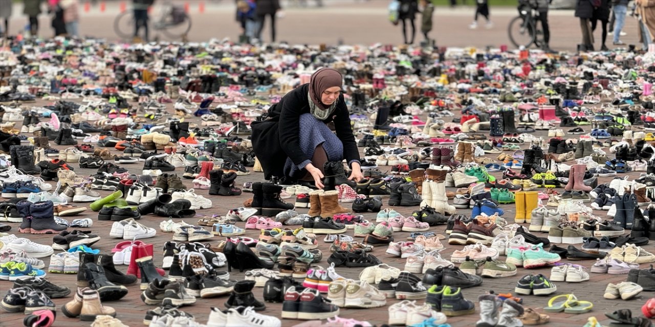 Hollanda'da, İsrail'in katlettiği Filistinli çocuklar için yaklaşık 8 bin çift ayakkabı bırakıldı