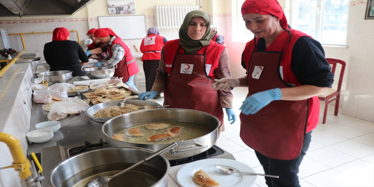 Bolu'da depremzede kadınlar yöresel bayram tatlısı yapıyor.