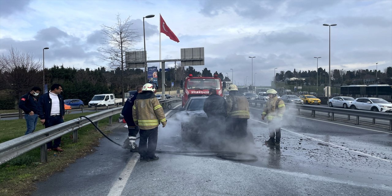 Bayrampaşa'da seyir halindeki otomobil yandı