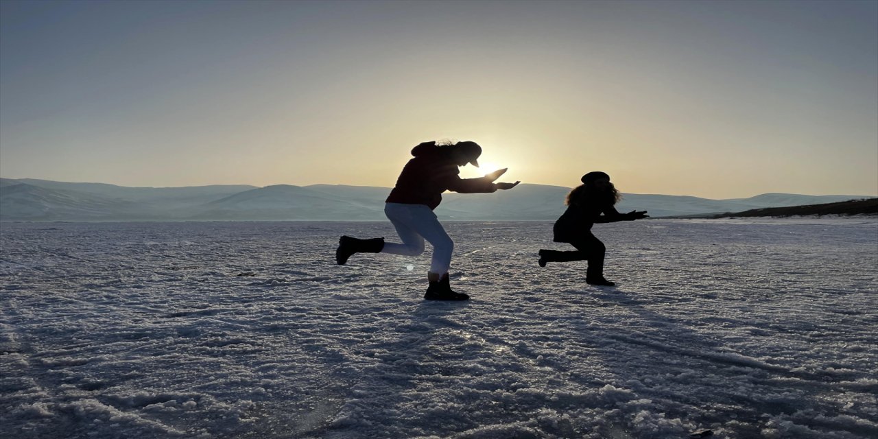 "Erik dalı" oynayarak buzla kaplı Çıldır Gölü'nü tanıttılar