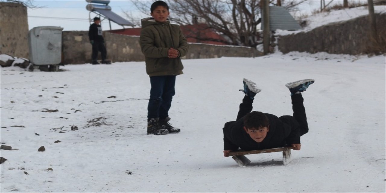 Erzurum’da kar çocuklara eğlence oldu: Kızaklar sokakları şenlendirdi