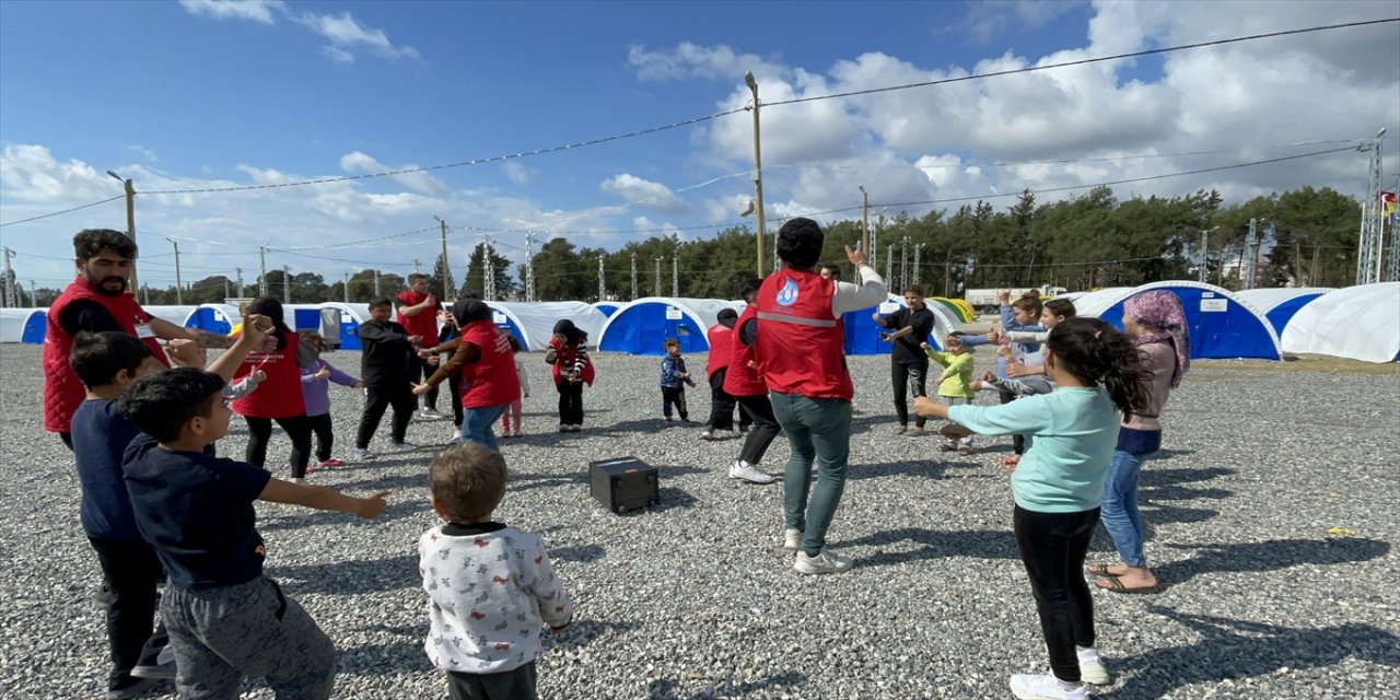 Hatay'ın Dörtyol ilçesinde depremzede çocuklara açık havada film gösterimi yapıldı.