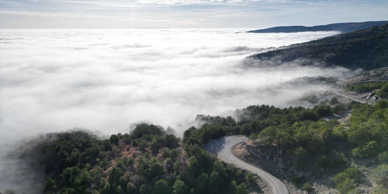 Manisa'da sis altındaki volkan konileri dron ile görüntülendi