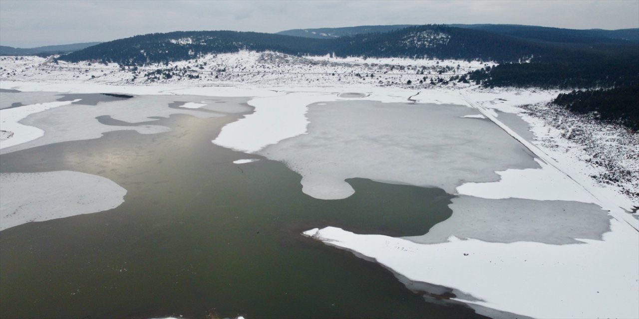 Bolu'nun doğal güzelliği Gölcük Tabiat Parkı beyaz örtüyle kaplandı