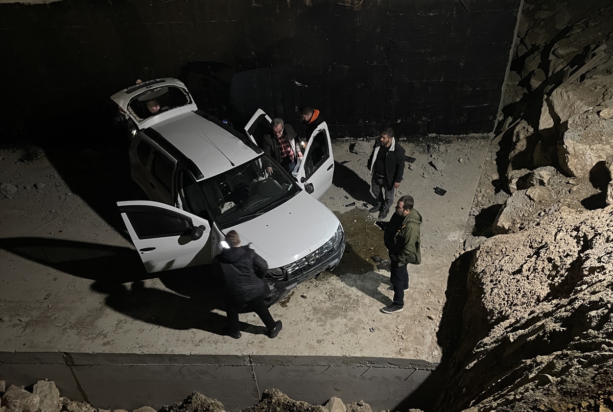 Otomobil yol çalışması yapılan inşaat alanına düştü