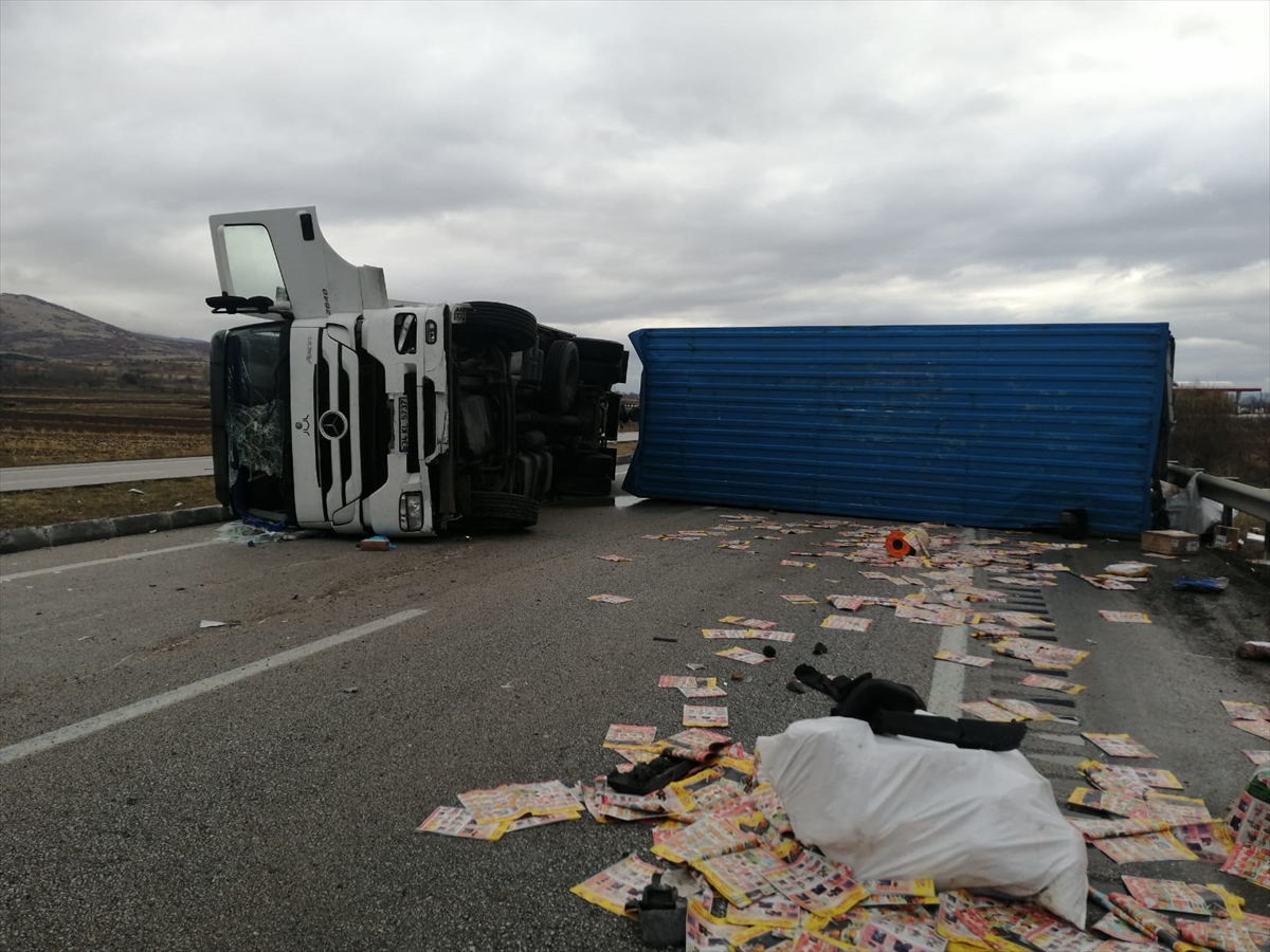 Amasya'da tırın devrilmesi sonucu 2 kişi yaralandı
