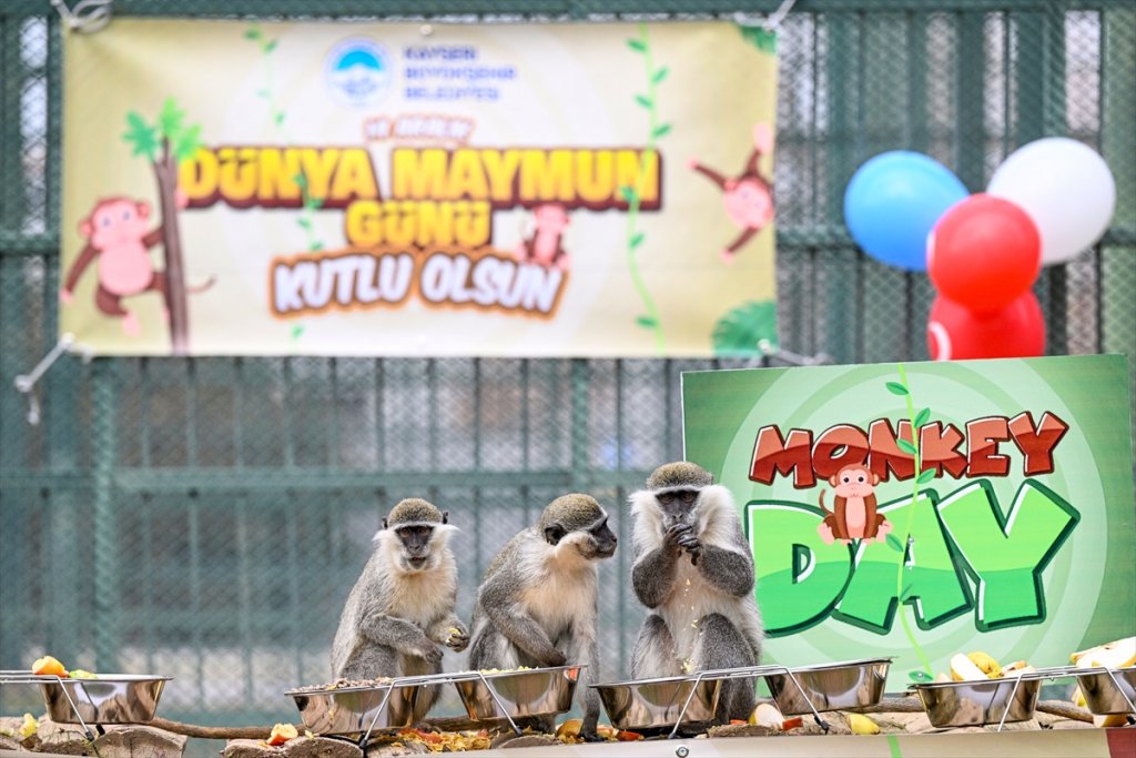 Kayseri Büyükşehir Belediyesi Hayvanat Bahçesi'ndeki 4 türden 52 maymuna, söz konusu gün dolayısıyla düzenlenen ziyafet partisinde başta muz olmak üzere elma, ayva, armut, havuç ve özel mamalar ikram edildi