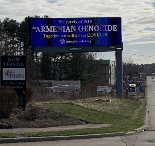 ABD'nin Massachusetts Eyaletindeki Ermeniler Boston'un güneyindeki Walpole şehrinde bilboarda "1915 ermeni soykırımından sağ kaldık, Korona'yi da yeneceğiz" yazarak reklam verdiler.