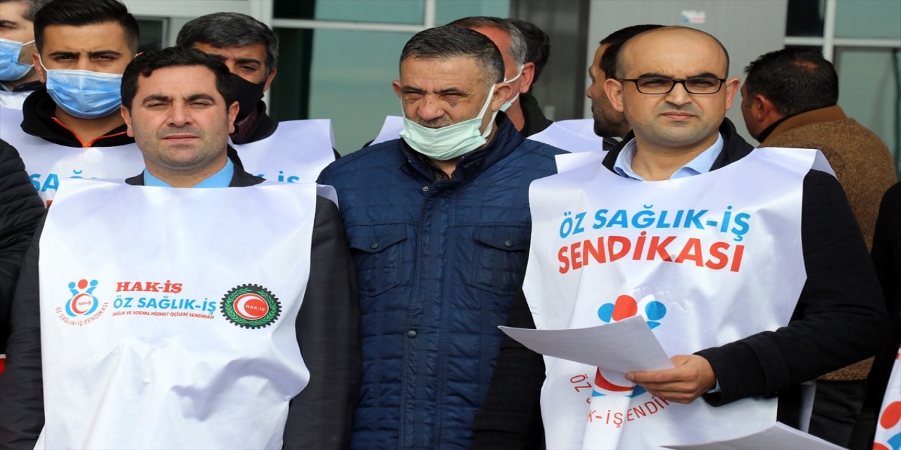 Haki-İş Konfederasyonu İl Başkanlığı ile Öz Sağlık-İş Sendikası Ağrı Şubesi üyeleri ve sağlık çalışanları, açtıkları "Sağlıkta şiddete hayır" pankartı ile Ağrı Eğitim ve Araştırma Hastanesi önünde bir araya geldi.