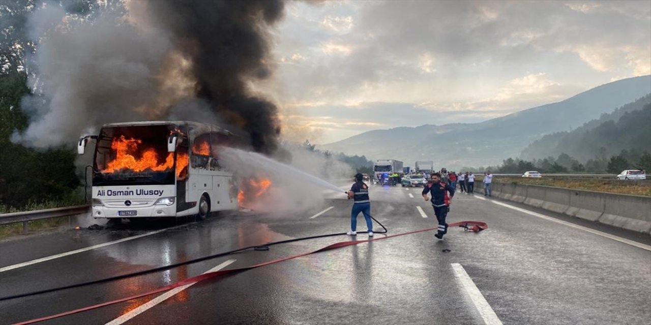 BOLU (AA) - Anadolu Otoyolu'nun Bolu kesiminde bir yolcu otobüsünde çıkan yangın itfaiye ekiplerince söndürüldü.