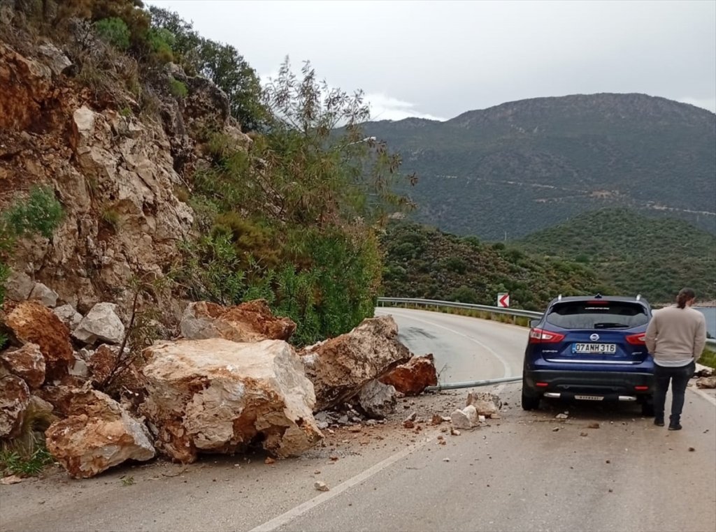 Kaş ilçesi Yarımada mevkisinde meydana gelen heyelanda seyir halindeki bir araç zarar gördü.