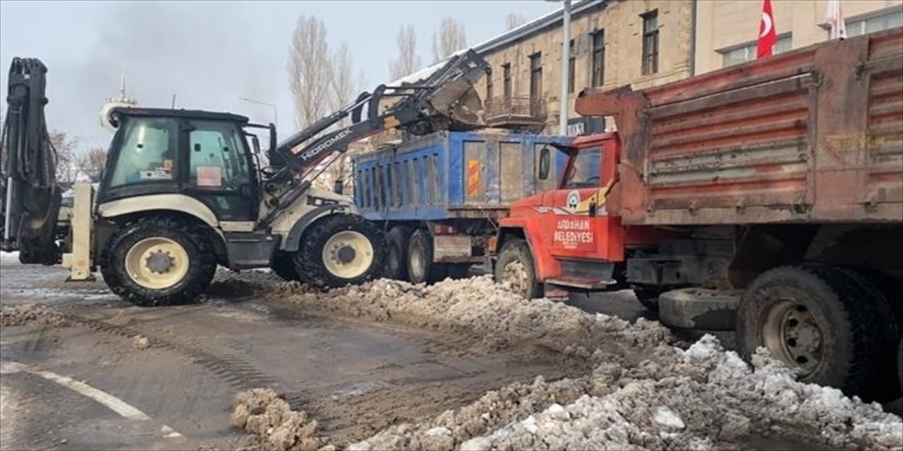 ARDAHAN (AA) - Ardahan'da dün başlayan yoğun yağışın ardından cadde ve sokaklarda biriken kar, belediye ekiplerince il merkezi dışına taşınmaya başlandı.