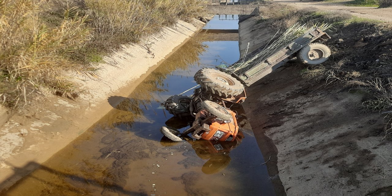 Derviş Taş'ın kullandığı 09 FF 606 plakalı traktör, sürücüsünün direksiyon hakimiyetini kaybetmesiyle Serdaroğlu Mahallesi'ndeki sulama kanalına devrildi.