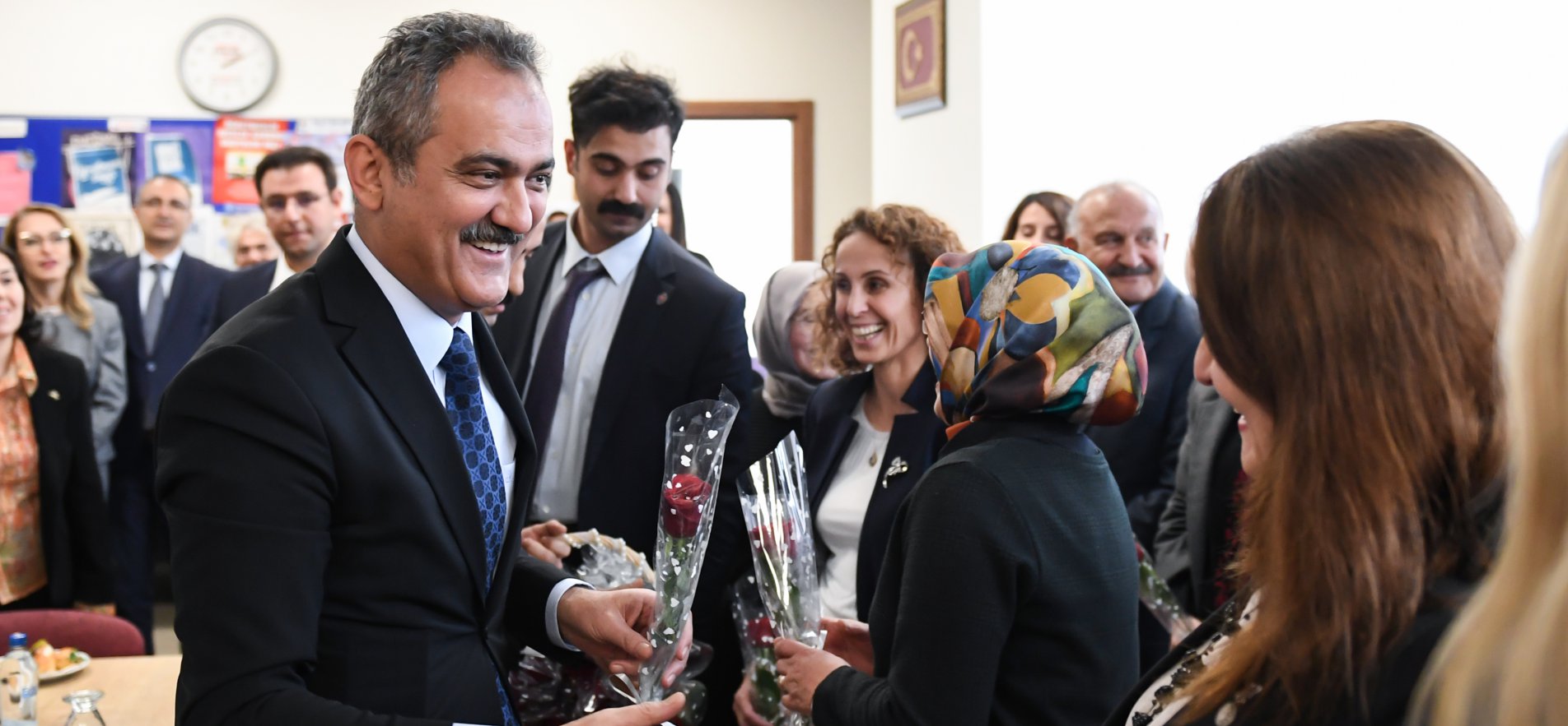 Öğretmenlerin 24 Kasım Öğretmenler Günü'nü kutlayarak çiçek takdiminde bulunan Bakan Özer, bir süre sohbet etti, görüş ve önerilerini dinledi.