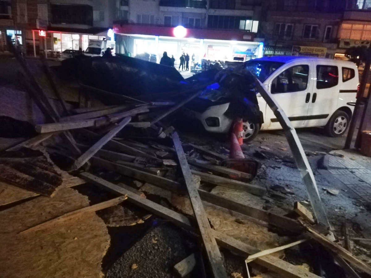 Ayvalık'ta, akşam saatlerinde başlayan kuvvetli fırtına, Altınova Mahallesi'ndeki 5 katlı bir apartmanın çatısının yerinden koparak bir aracın üzerine düşmesine neden oldu.