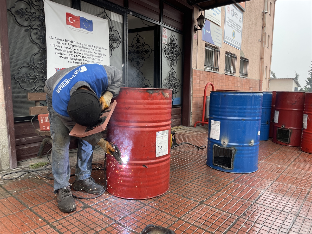 Okul atölyelerinde hummalı bir çalışmayla üretilen sokak sobaları, deprem bölgesine ulaştırılmak üzere gönderilecek.