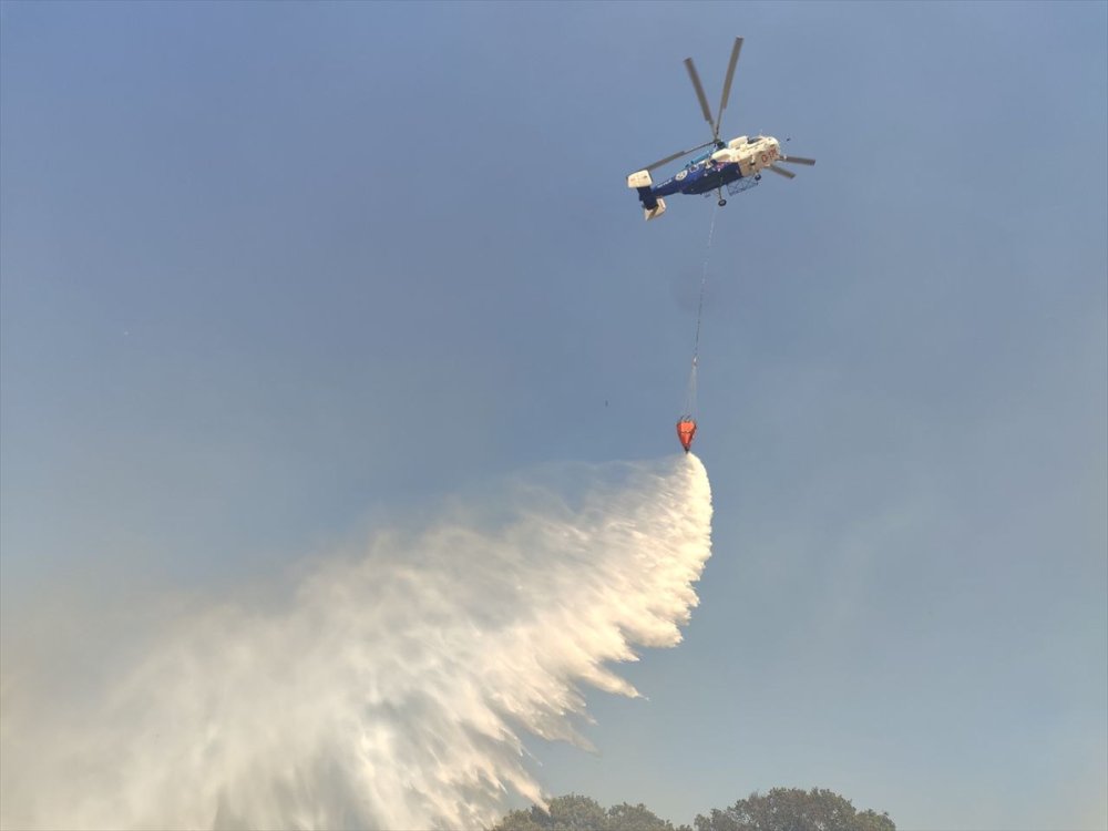Çanakkale Orman Bölge Müdürlüğüne bağlı ekipler, kuvvetli rüzgarın da etkisiyle geniş bir alana yayılan yangının ormanlık alana sıçramasını önlemek için çalışmalarını havadan ve karadan sürdürüyor.