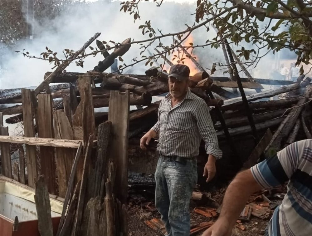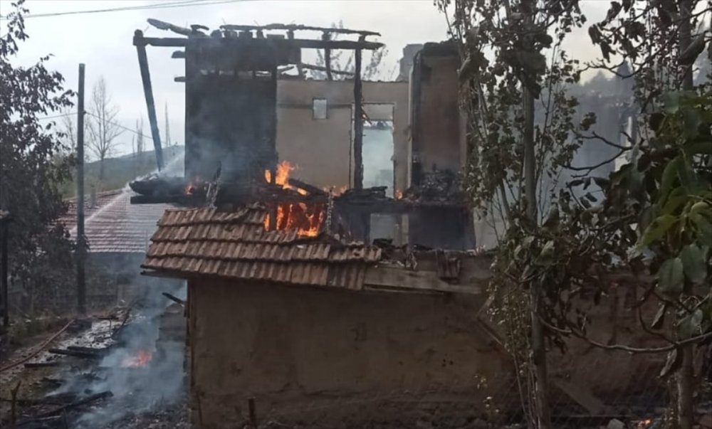 Çorum'da 2 ev ve 3 samanlık tamamen yandı.
