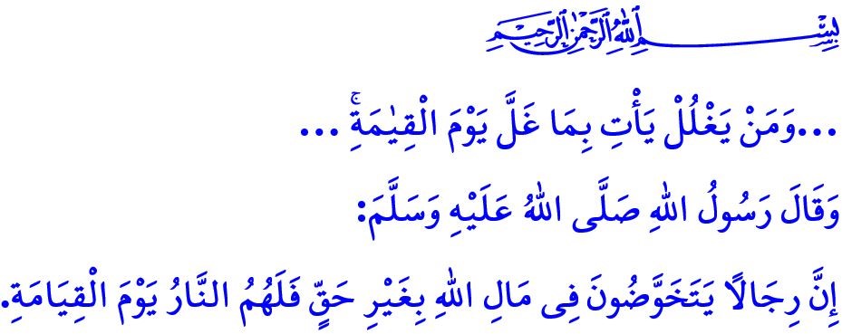 “…Kim, kamu malına ihanet ederse, kıyamet günü, hainlik ettiği şeyin günahı, boynuna asılı olarak gelir...”