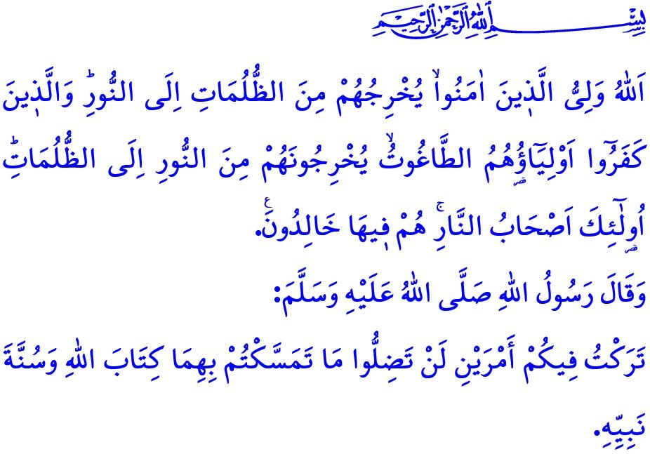 “Size iki şey bıraktım. Onlara sımsıkı sarıldığınız sürece yolunuzu asla şaşırmazsınız. Bunlar: Allah’ın Kitabı ve Peygamberinin sünnetidir.”