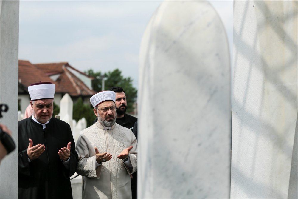 Daha sonra Bosna Hersek İslam Birliği Başkanı Husein Kavazovic ile Saraybosna'daki Kovaçi Şehitliği'ni ziyaret eden Erbaş, Bosna Hersek'in ilk cumhurbaşkanı merhum Aliya İzetbegoviç'in kabrinin başında dua etti.