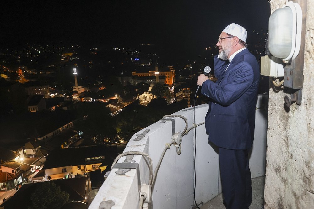Saraybosna'nın merkezindeki caminin minaresine çıkan Erbaş, ülkede 500 yıldır sürdürülen; minareden ezan okuma geleneğini devam ettirdi.