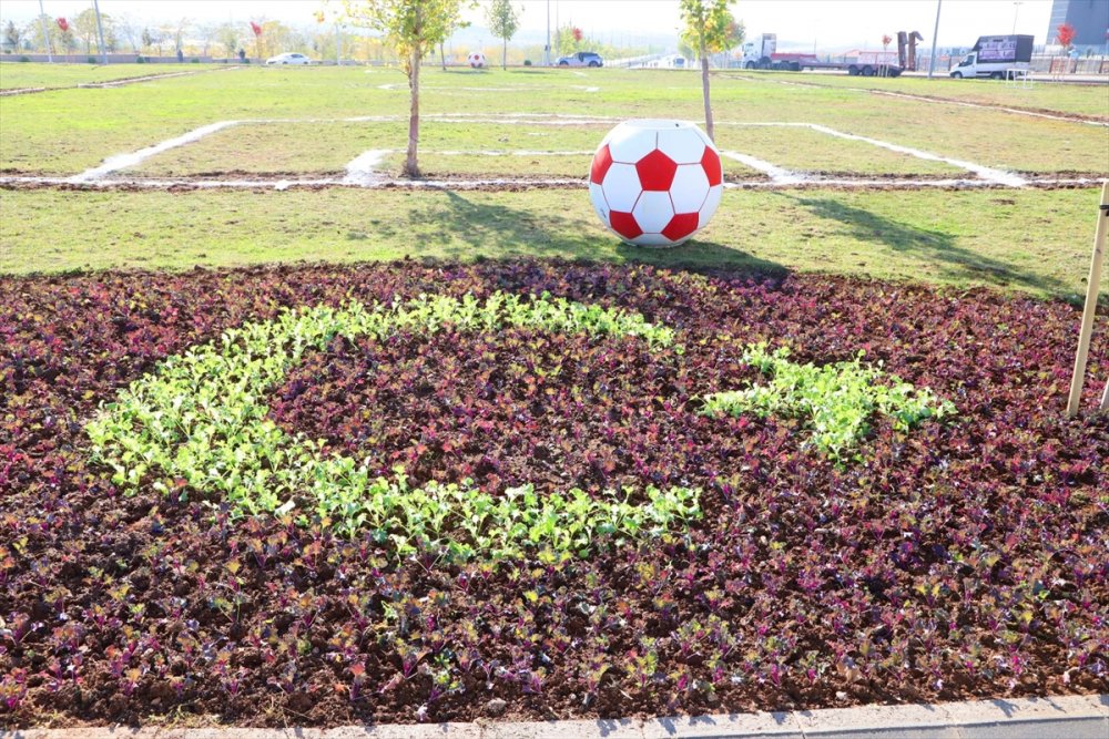 Sulama tesisatlarının da elden geçirildiği altyapı çalışmalarının ardından alanın bitkilendirmeye müsait hale gelmesinden sonra ekipler, stadyum çevresi ile bağlantı yollarına farklı tür ve renklerde 50 bin kışlık mevsimlik çiçeği toprakla buluşturdu.