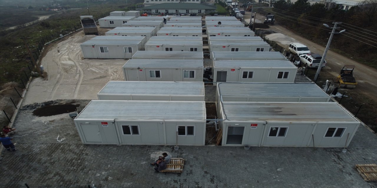 Düzce'de depremzedeler için konteynerler kurulmaya devam ediliyor.