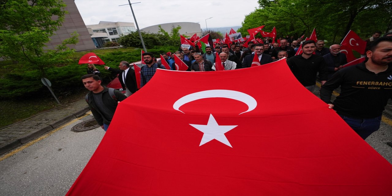 DÜZCE (AA) - Düzce'de üniversite öğrencileri, İsrail'in Gazze'ye yönelik saldırılarına tepki göstermek ve Amerika Birleşik Devletleri (ABD) ve Avrupa'nın çeşitli üniversitelerinde Filistin için yapılan protestolara destek vermek için eylem gerçekleştirdi.