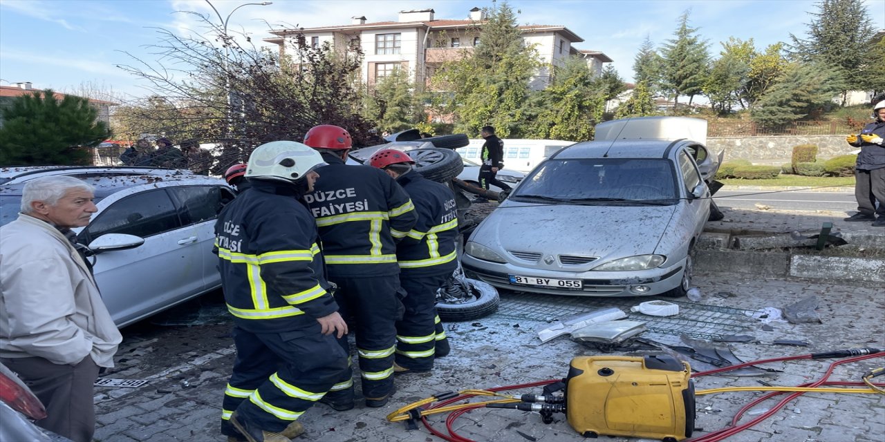 DÜZCE (AA) - Düzce'de virajı alamayan otomobilin park halindeki 5 araca çarpması sonucu sürücü yaralandı.