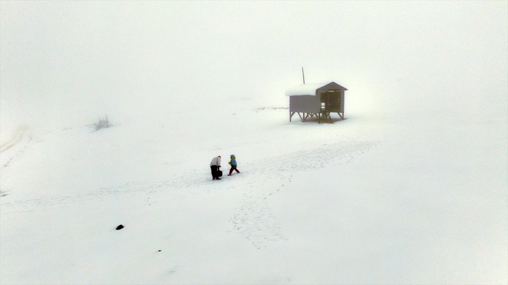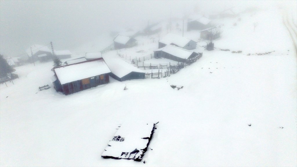 Yaylanın yamaçlarında oluşan sis de karla güzel görüntüler oluşturdu.