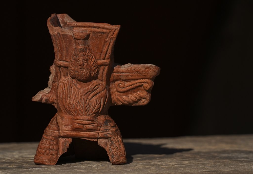 Aybek, kazılar sırasında pişmiş topraktan üzerinde Mısır tanrısı Serapis'in kabartmasının yer aldığı tütsü kabının bulunduğunu söyledi.