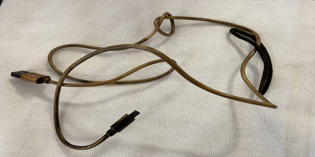 Diyarbakır'da kusma ve bulantı şikayetiyle hastaneye kaldırılan 15 yaşındaki bir çocuğun midesinde bulunan bir metrelik şarj kablosu ve...