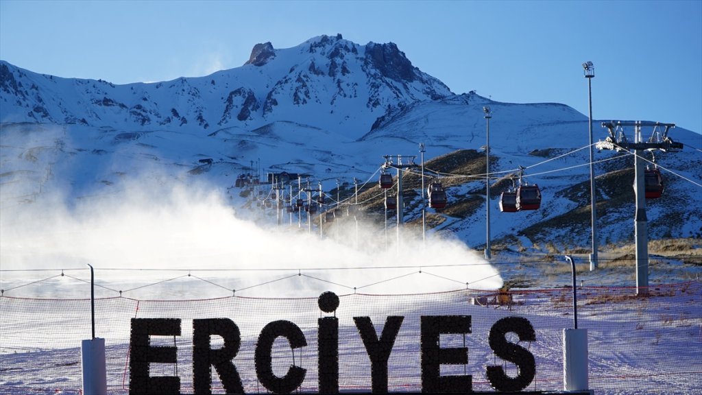 Türkiye'nin önemli kış turizm merkezlerinden Erciyes'te beklenen kar yağmayınca 154 karlama makinesiyle saatte yaklaşık 9 bin metreküp suni kar üretiliyor