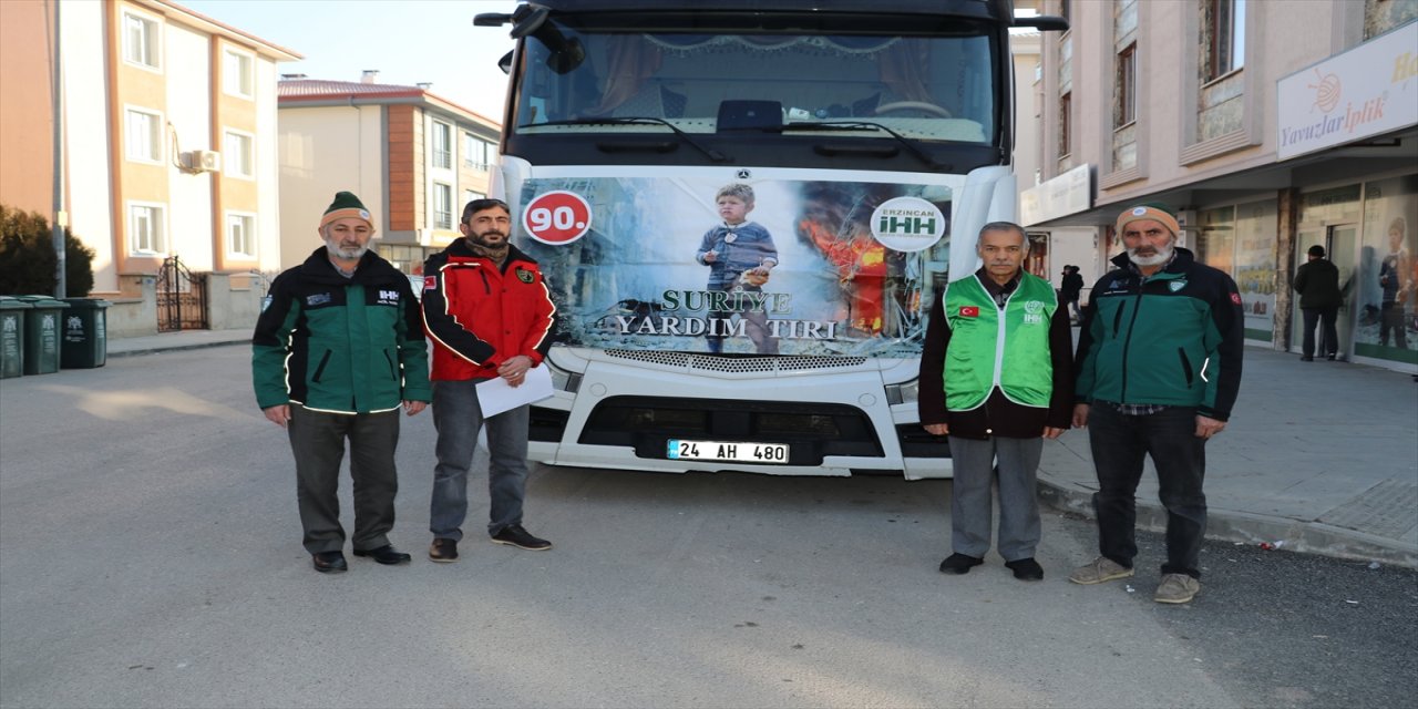 Erzincan İHH İnsani Yardım Derneği Basın Sözcüsü Halil İbrahim Akkoyunlu, dernek binası önündeki uğurlama töreninde, kentten 90'ıncı insani yardım tırını ihtiyaç sahiplerine gönderdiklerini söyledi.