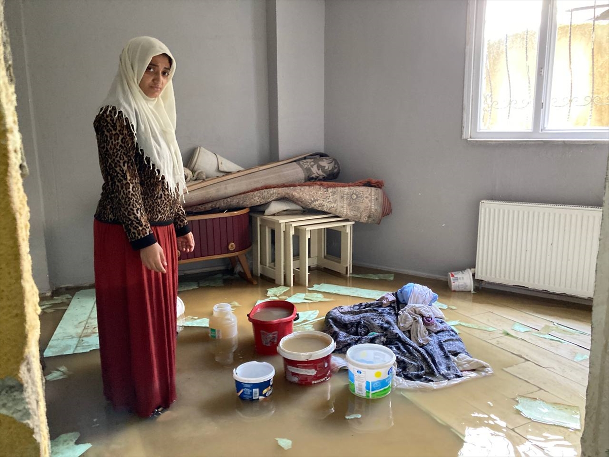 Vatandaşlar evlerindeki suyu tahliye etmeye çalışırken şiddetli sağanak özellikle zemin kattaki dairelerde hasara neden oldu.