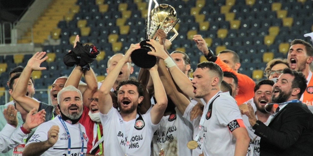 Daha sonra Fatih Karagümrüklü futbolcular, TFF yöneticilerinden kupayı teslim alarak takım arkadaşları ve yöneticilerle kaldırdı.