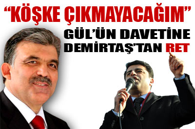Gül, bugün eski BDP lideri Selahattin Demirtaş'ı Köşk'e davet etti. Demirtaş önce görüşmeye 'olumlu' yanıt verdi, sonra da görüşmeyi iptal ettiğini, Köşk'e çıkmayacağını bildirdi.