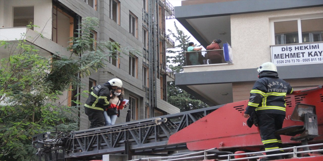 Ekipler dumandan dolayı binada mahsur kalan vatandaşları itfaiye aracının merdiveniyle tahliye etti.