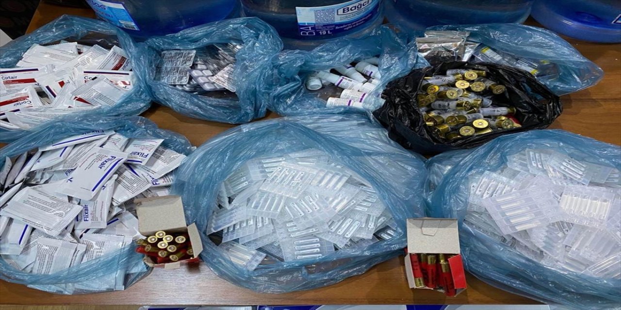 Adreslerde, 2 bin 504 reçetesiz ilaç, 95 litre sahte içki ve ruhsatsız 2 av tüfeği ele geçirildi.