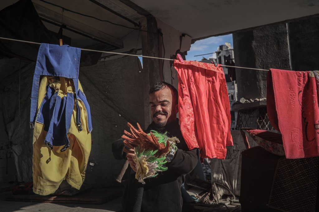 İsrail'in saldırılarıyla Ebu Sukker'in kalbi hüzünle dolsa da etrafındakileri "gülümsetme ve mutlu etme" misyonundan vazgeçmedi.