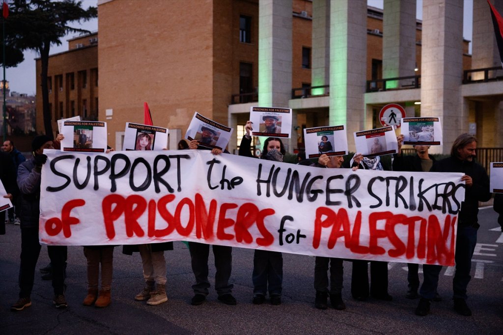 Başkentin Vittorio Emanuele 2 Meydanı'ndan başlayan ve Sapienza Üniversitesinin önüne kadar süren yürüyüşte, İsrail'in Filistinlilere yönelik devam eden baskı ve saldırıları protesto edildi.