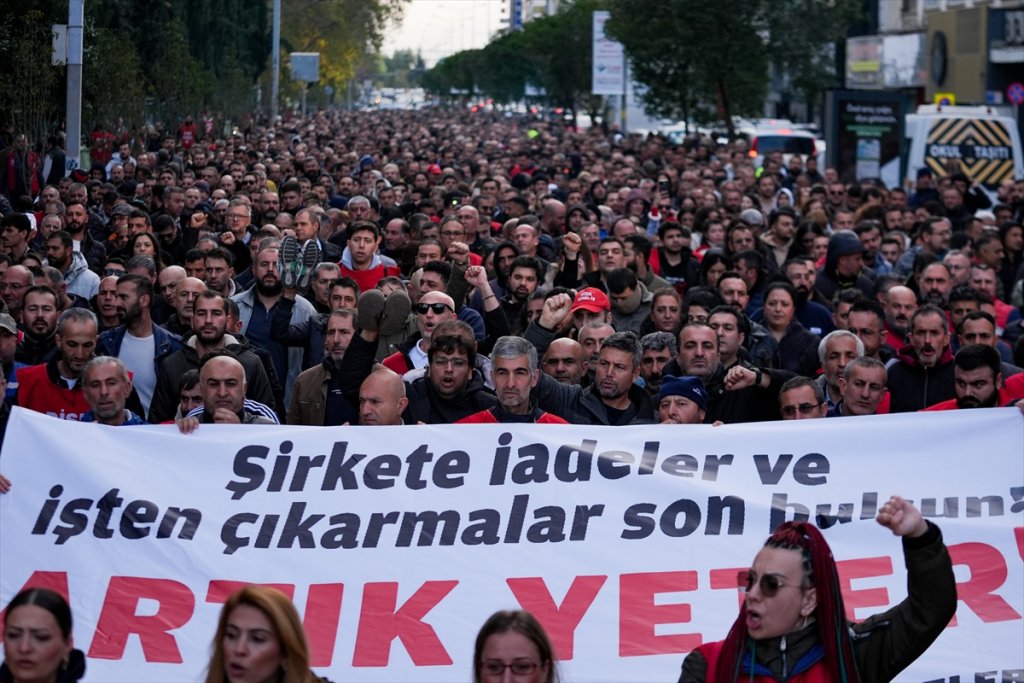 İşçiler ayakkabılarını ve çoraplarını çıkararak Mürselpaşa Bulvarı'ndan Kültürpark 9 Eylül Kapısı'na kadar yürüdü. Yürüyüş sırasında slogan atan işçiler, ellerindeki ayakkabıları salladı.