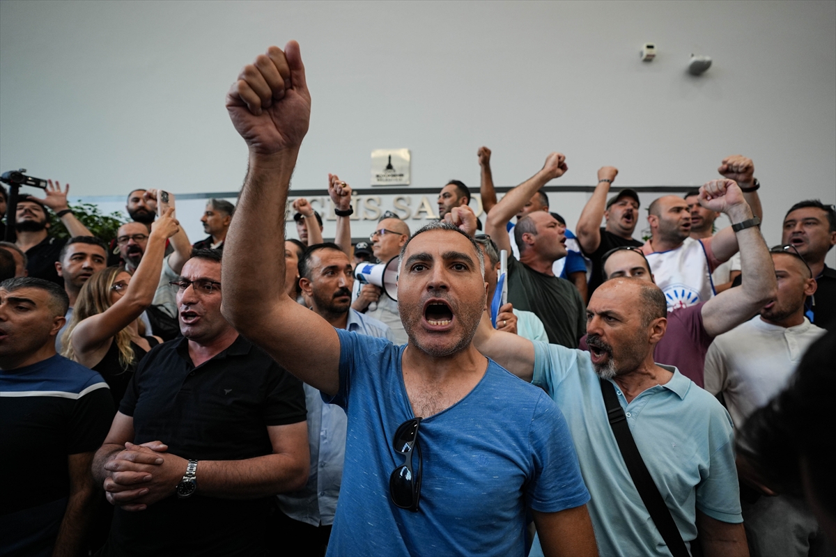 Sendika temsilcileri ve memurlar, "Bize ekmek yoksa size huzur yok", "Zafer direnen emekçinin olacak", "Başkan nerede emekçiler burada", "Sadaka değil toplu sözleşme", "Emekçiler burada Cemil Tugay nerede?" sloganları attı.