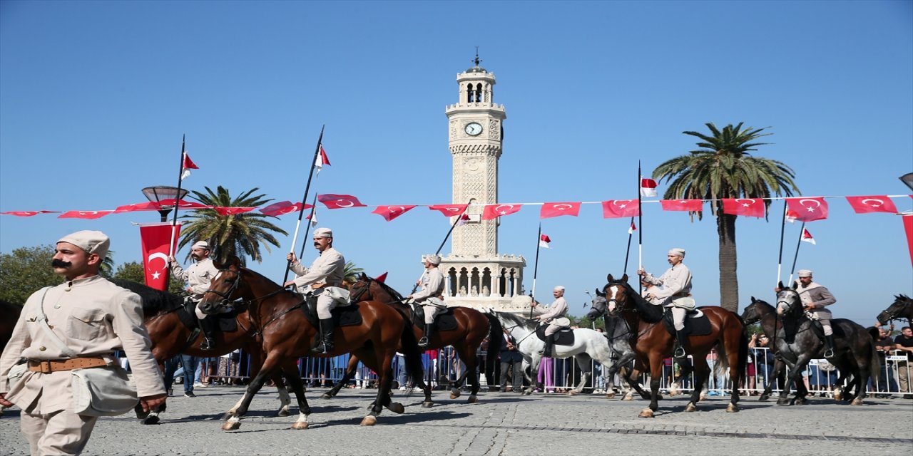 Valilik önünde düzenlenen törende, süvari birlikleri temsili olarak İzmir'e giriş yaptı. Atatürk Meydanı'na gelen birlik, vatandaşlardan büyük alkış aldı. Saygı duruşunda bunulmasının ardından Hükümet Konağına çıkan asker, Türk bayrağını göndere çekti.