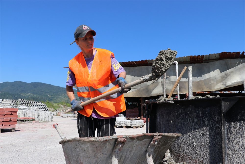 ZONGULDAK (AA) - GÖKHAN YILMAZ - Zonguldak'ın Çaycuma ilçesinde beton ve yapı malzemeleri üreten bir firmada çalışan Yasemin Menteşe ve Ayten Kaygılı, çimento taşıyıp harç karıştırıp kalıp dökerek ailelerinin geçimine katkı sağlıyor.